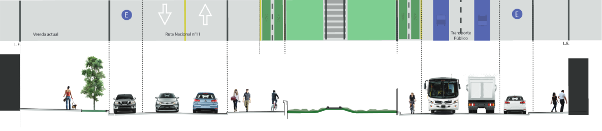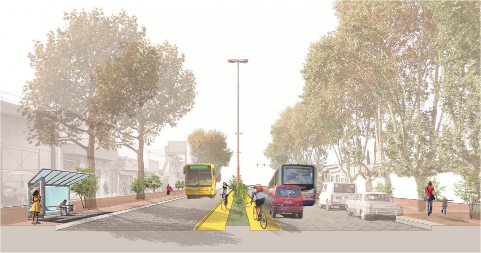 La eficiencia pretendida en la movilidad metropolitana se conduce a través de una segregación entre el transporte de cargas y el de pasajeros, materializado en una progresiva división de los flujos vehiculares, en este caso, en el Corredor Sur: camiones circulando por la Autopista a Buenos Aires y condiciones preferenciales para el transporte público de pasajeros circulando por la RP n°21. Con el proyecto aquí impulsado, se reorganiza un eje estructurante de la urbanización habituado al tránsito pasante, pero poco amable con las actividades de cercanía. Transformando los tramos urbanos en avenidas plenas, se invertiría la lectura del espacio público intervenido: la prioridad dejará de centrarse en el tránsito de paso para jerarquizar los usos de estadía.