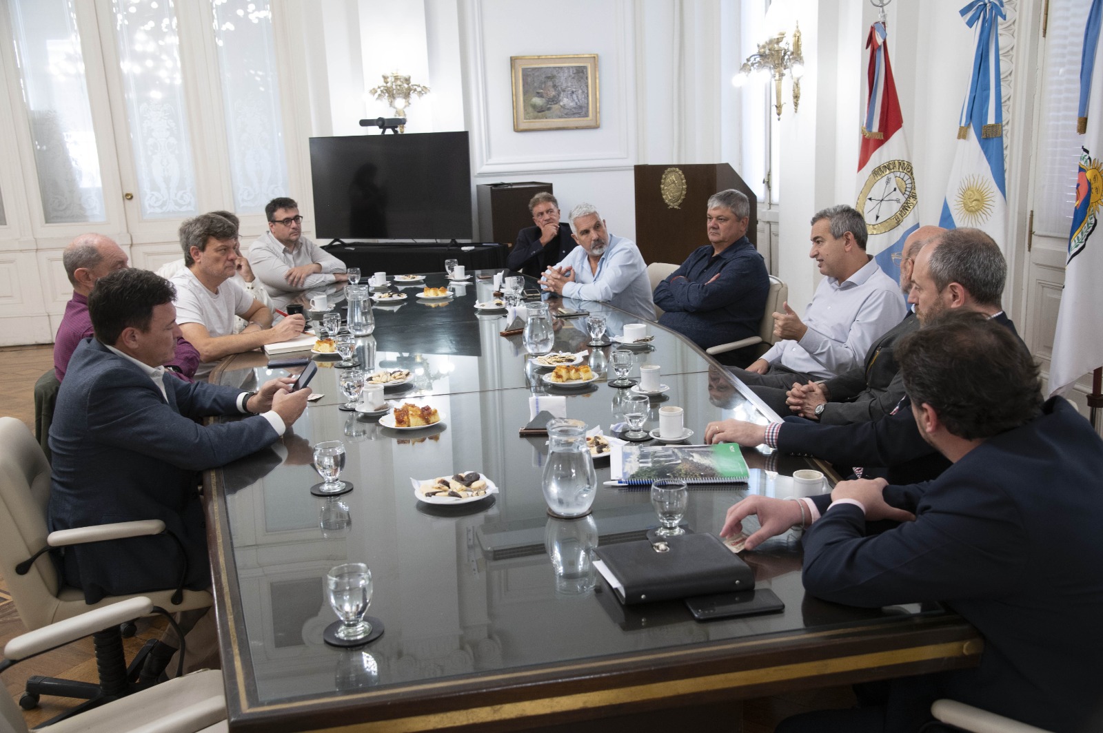 El Intendente de Rosario Pablo Javkin, en su carácter de Presidente del ECOM Rosario, coordinó el encuentro del que participaron los intendentes que conforman el Directorio: Leonardo Raimundo (San Lorenzo), Adrián Maglia (Granadero Baigorria), Alberto Ricci (Villa Gobernador Gálvez), Jorge Berti (Villa Constitución) y Daniel Cinalli (Capitán Bermúdez).