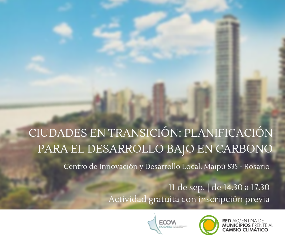 El miércoles 11 de septiembre tendrá lugar una jornada de trabajo sobre “Ciudades en transición, planificación para el desarrollo bajo en Carbono”, en el marco del Workshop Internacional Gestión Local del cambio climático, que tendrá lugar en Rosario.