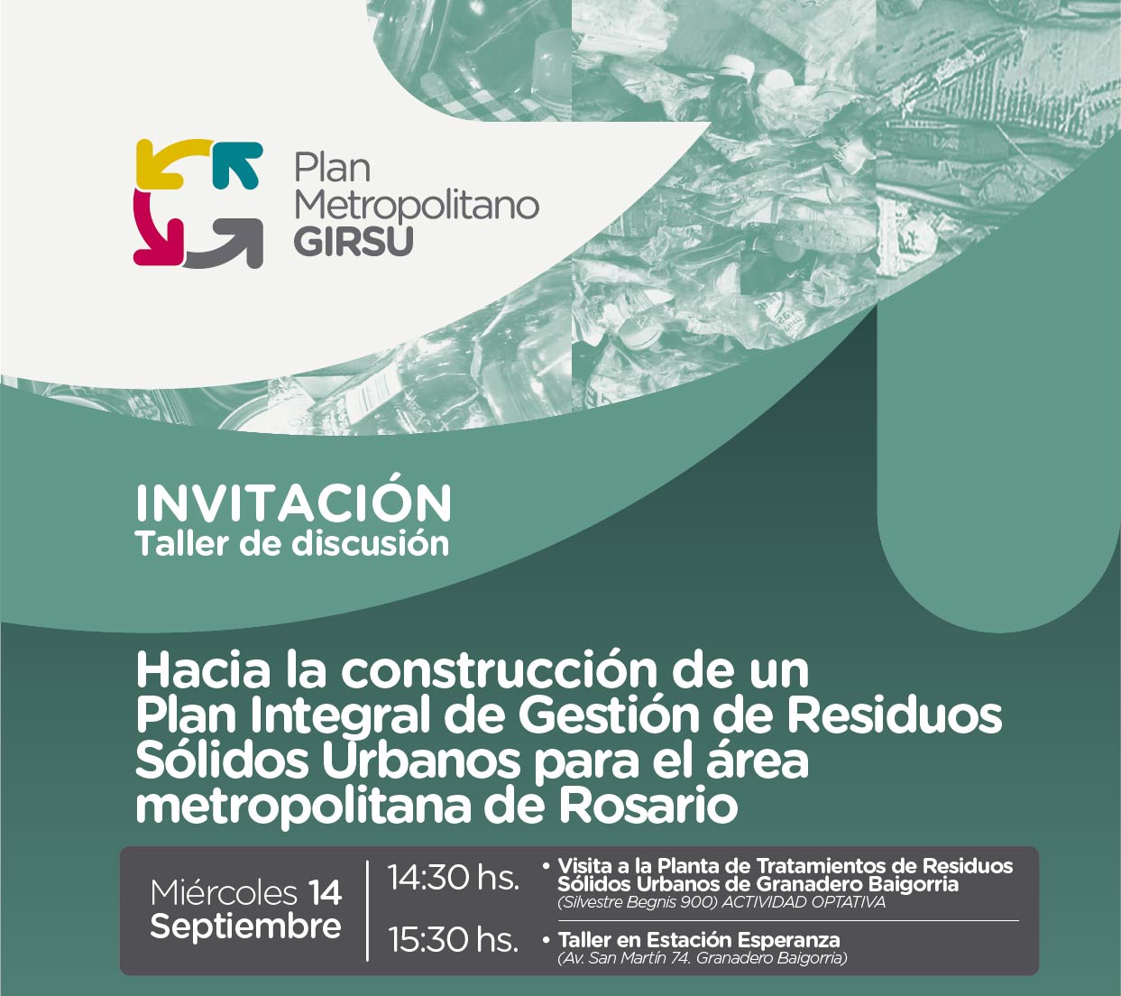 Organizado por el Ente de Coordinación Metropolitana de Rosario (ECOM Rosario), la ciudad de Granadero Baigorria será sede del tercer taller de discusión sobre la Gestión de Residuos Sólidos Urbanos (GIRSU) en el área metropolitana de Rosario el próximo miércoles 14 de septiembre a las 15.30 hs. en Estación Esperanza (Av. San Martín 74).