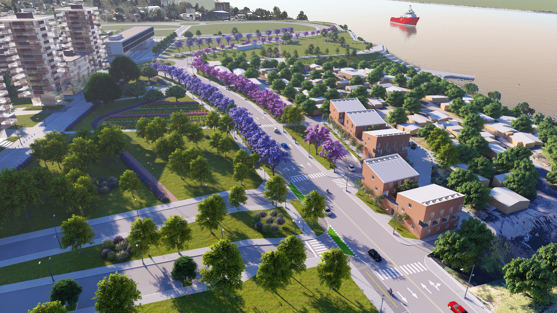 La intervención involucra la construcción de los trazados viales y 19 has de espacios públicos, con la provisión de la totalidad de las infraestructuras de servicios necesarias.